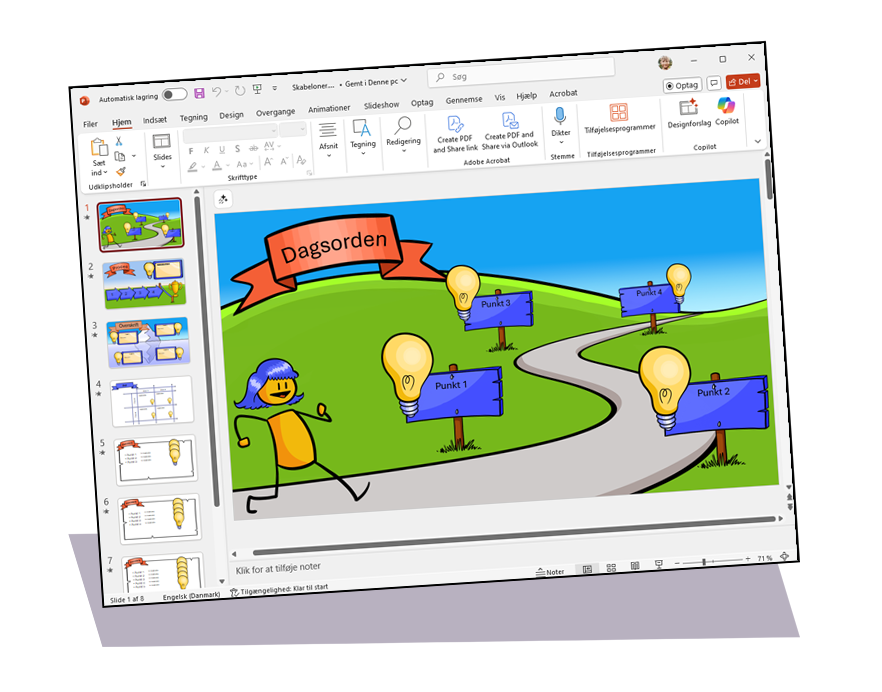Derudover får du et udvalg af Powerpoint skabeloner, lige til at indsætte i dine egne slides, fuldt animerede og nemme at redigere.