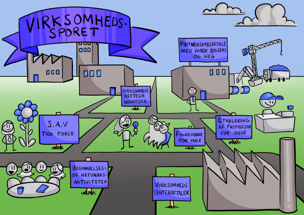 Illustration til undervisningsmateriale, lavet til Parternes Uddannelsesfællesskab